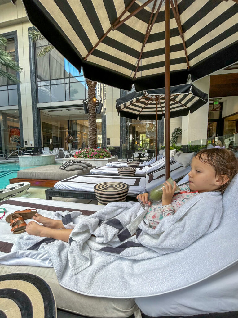 On Saturday morning, we ate breakfast together, and I headed to the conference, while JD and Luna floated to the pool.